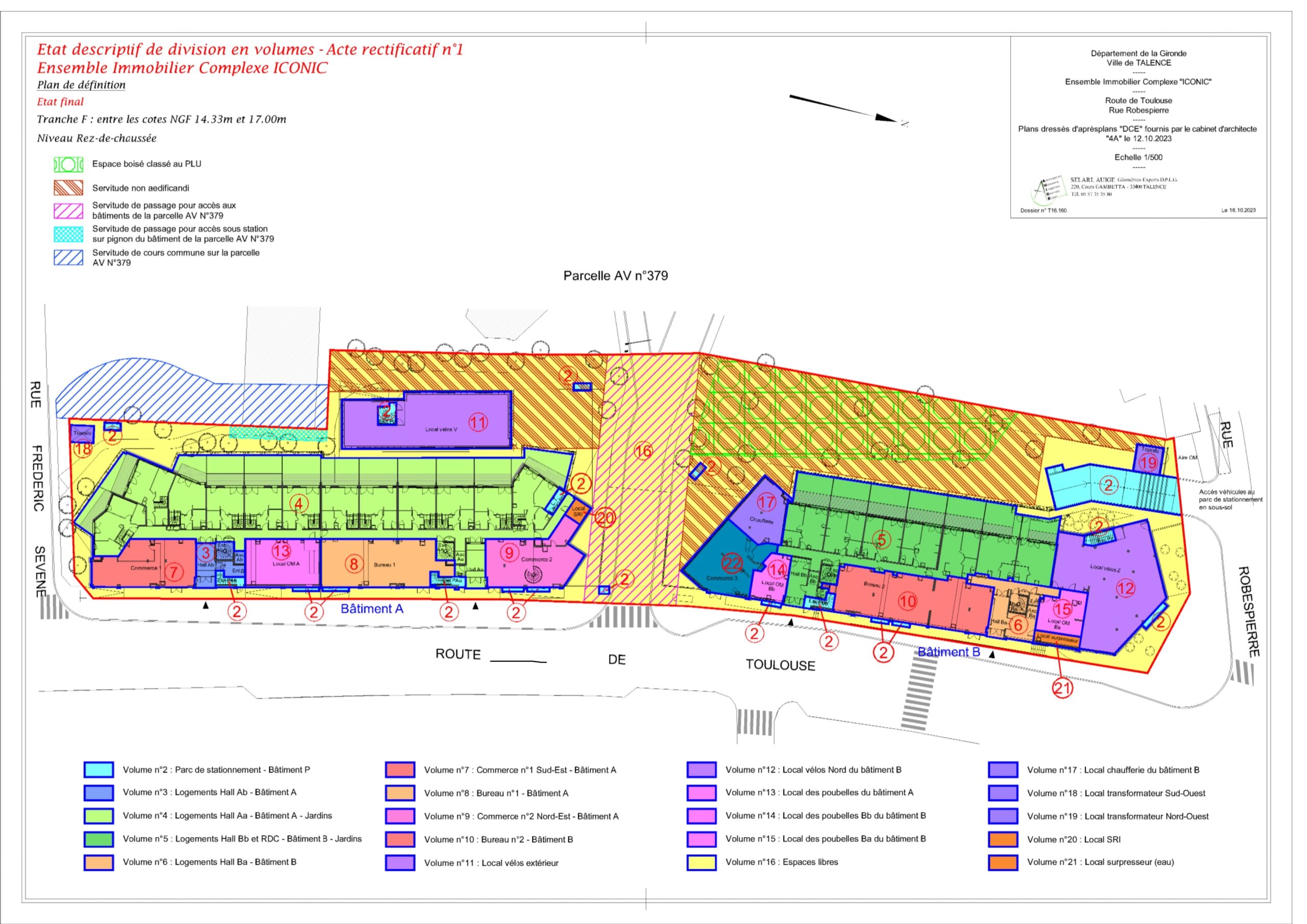 L’ensemble des bâtiments est divisé en 22 volumes dont les statuts, les fonctions et la gestion sont décrits sommairement